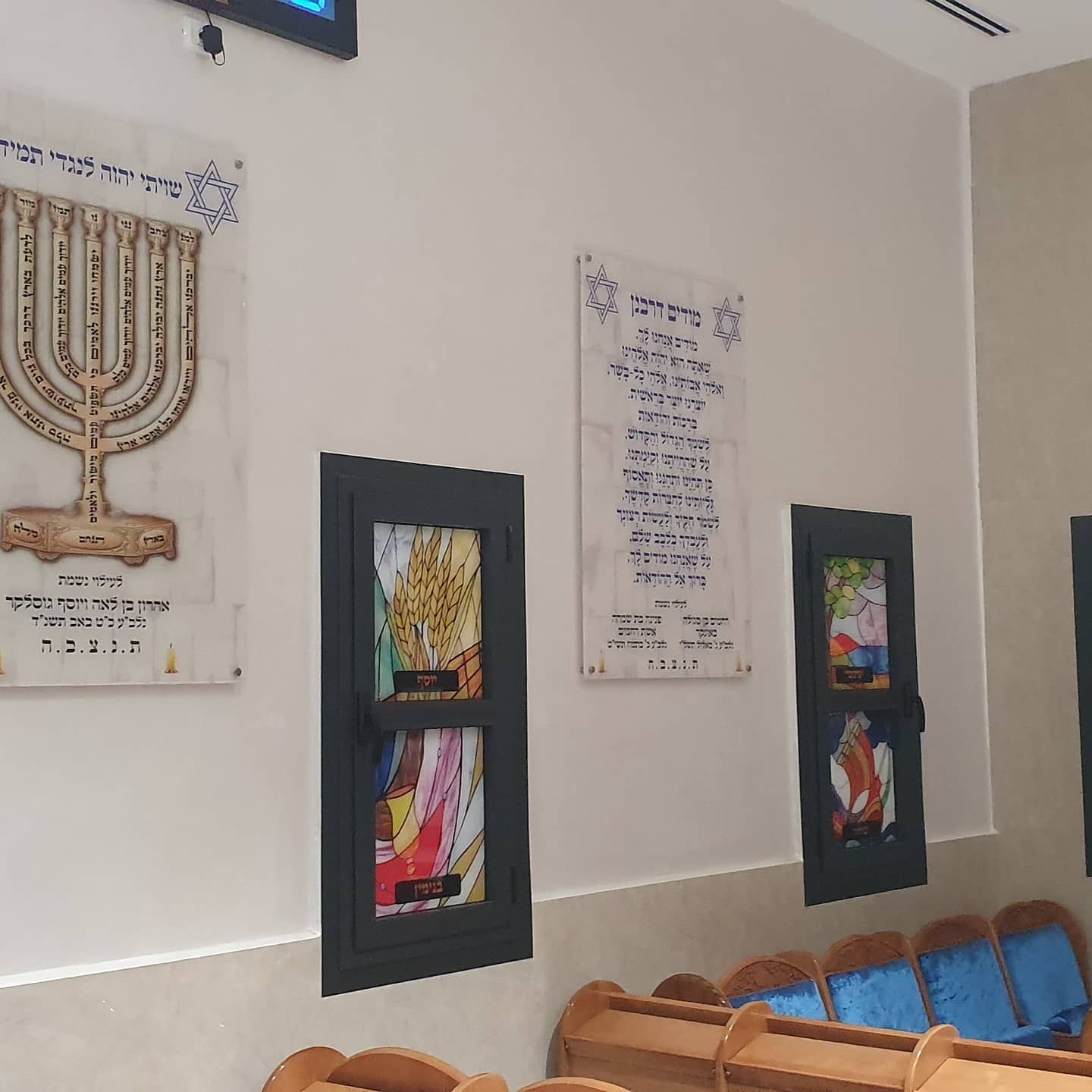 בזכוכית פז אנו מתמחים ביצירת עבודות זכוכית לבתי כנסת בהתאמה אישית, עם דגש על יופי, קדושה ודיוק עיצובי.